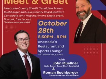 A meet and greet will be held on Tuesday October 28th at 5pm featuring John Muellner for Lake County Board District 1 and Elect Roman…