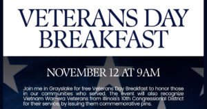 Congressman Brad Schneider is hosting a Veterans Day Breakfast on Wednesday, November 12 from 9:00 to 11:00am. Breakfast is free ...